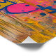 A vibrant pop-art portrait of a classic Hollywood icon—sleek black top, blonde waves, and poised confidence—set against a neon, graffiti-splashed backdrop of hearts, crowns, and hand-painted phrases. Retro glamour meets street-art energy for a bold, colorful statement piece.