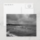 Eine Postkarte mit schwarz-weißem Blick auf das Meer und den Strand von Sabaudia an einem bewölkten Tag am Ende des Winters