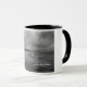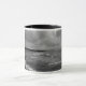 Eine Tasse mit einem Strandbild an bewölkten Tagen. Schwarz und Weiß