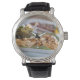 Uhr, Klassische Damenuhr mit schwarzen Lederarmband