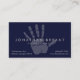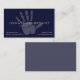 Marineblau handprint Entwurfsmassage-Therapeut-Visitenkarte mit zwei Tönen. Visitenkartetext wird gedruckt, in der hellgrauen Tinte aber kann zur Farbe Ihrer Wahl durch die Anwendung besonders anfertigen geändert werden es Eigenschaft. Tippen Sie einfach Ihre Informationen unter Verwendung der Schablone ein.