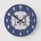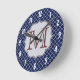 Marine-Blau Quarterfoil Gitter-Viertel-Folien-Monogramm-Initialen-personalisierte kundenspezifische Gewebe-Muster-Wand-Uhr