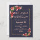 Marine-Blau-Rosa-Blumengoldbrautjungfern Einladung