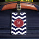 Marine-Blau-u. weißerZickzack Monogramm Lugguage Gepäckanhänger