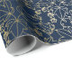 Marine-Blau und Goldefeu-Blatt-Blumenmuster Geschenkpapier