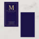 Ein moderner eleganter stilvoller Entwurf des Marineblaus und -goldes, der Monogramm, Namen und Kontaktinformationen Goldin der beruflichen Schriftartart mit Goldgrenze auf Marineblauhintergrund kennzeichnet.