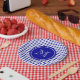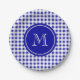 Marine-Blau-und Weiß-Gingham, Ihr Monogramm Pappteller