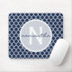 Marine-Blau und Weiß Quatrefoil Monogramm Mousepad