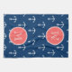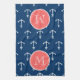 Marine-Blau-weißes Anker-Muster, korallenrotes Geschirrtuch