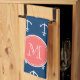 Ein preppy, See-, Marineblau und ein Weiß verankert Muster mit Ihrer Initiale in einem modernen Schriftart, auf einem korallenroten Kreisaufkleber, Fahne, Rahmen mit weißen Kreislinien Grenze. GraphicsByMimi© Trendy, stilvolles, modernes, niedliches Ankermuster, das Sie mit Ihrem Monogramm für sie personifizieren können. Benutzen Sie das Schablonenfeld, um Ihre Monogramminitiale zu addieren, oder zu beschriften oder vorzuwählen "fertigen sie" für mehr redigierende Wahlen wie das Addieren Ihres Namens, Text besonders an, oder das Foto, zum Ihre Selbst zu machen, einzigartig, personalisiert, ein-von-ein-nett fertigen kundenspezifisch an. Anderes färbt verfügbar.