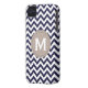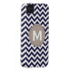 Marine-Blau-weißes Monogramm-Zickzack Muster Case-Mate iPhone Hülle