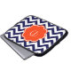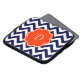 Ein kundengerechter orange Monogramrahmen ist auf einem Hintergrund eines mutigen Marineblau- und weißenZickzack Musters.