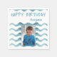 Marine Blue Waves Kindergeburtstag Foto Napkins. Neapel mit abstrakten Wellen in Blau und Weiß - ideal für eine Geburtstagsparty speziell für Jungen. Fügen Sie Ihren Namen und Ihr Foto hinzu.