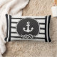 Meeresthema Blau und Weiß Horizontaler Streifen Hintergrund mit Ankern und Abbildung Acht Knoten Lumbar Pillow