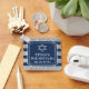 Dieser blau, grau und weiß gestreifte Bar Mitzvah Schlüsselanhänger ist ein perfektes Gastgeschenk für einen klassischen Bar Mitzvah. Dieser quadratische Bar Mitzvah Schlüsselanhänger Gevor hat ein marineblau-graues und gestreiftes Muster hinter einem marineblau-weiß getrimmten ticketförmigen Textbereich, der mit dem Namen und dem Datum der Bar Mitzvah in weißer Schrift unterhalb eines grauen David-Sterns oben personalisiert ist, der entfernt werden kann, wenn man diese für eine andere Art von Veranstaltung will.