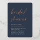 Erleben Sie die Braut mit den modernen und minimalen Brautduscheinladungen mit atemberaubenden Goldfolienakzenten der Rose. Einfaches Design mit "Brautparty" in lässiger handgeschriebener Schrift auf weichem marineblau-Hintergrund, wobei Ihre Veranstaltungsdetails auf dem unteren links in modernem Offen-Weiß-Schriftsatz ausgerichtet sind.