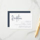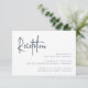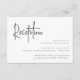 Eine kleine Einladungs-Einladungskarte für Ihre Empfang-Details, mit "Empfang" oben in handgeschriebenen Schriftzeichen und Ihren Empfang-Details rechts unten ausgerichtet. Entworfen, um unsere modernen handgeschriebenen Skripteinladungen zu erfüllen. Ein wunderschönes typografisches Design mit minimalistischem Ambiente, modernem marineblau handgeschriebenem Skript und klassischem Serifenschrift.