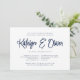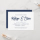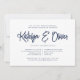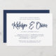 Unser elegantes, modernes Hochzeitsessen oder Cocktail-Party Einladungen in schicken Marineblau und Weiß tragen Ihre Namen in handgeschriebener Schrift-Typografie. Personalisieren Sie Ihre Zeremonie Probe und Probe Dinner Details unten. Enthält Platz für den Zeitpunkt der Probe und die Kirche- oder Veranstaltungsadresse. Karten werden in Vollblau umgeschaltet. Ein elegantes Design in klassischer Marine und Weiß für moderne Paare und elegante Events.