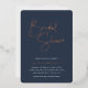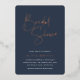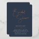 Erleben Sie die Braut mit den modernen und minimalen Brautduscheinladungen. Einfache Design-Features "Brautparty" in der Rose Gold-Folie handschriftlich Skript, mit Ihren Event-Details unten auf einem reichen marineblau Hintergrund.