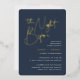 Die Gäste werden eingeladen, das glückliche Paar mit diesen modernen und minimalen Duscheinladungen zu feiern. Einfaches Design in lässiger, handgeschriebener Goldfolie-Schrift, unten rechts ausgerichtet, auf einem marineblauen Hintergrund.