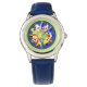 Kinderuhr aus Edelstahl mit blauem Lederarmband
