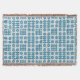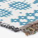 Eine attraktive Wurfs-Decke, mit einem Muster der traditionellen Waliser-Tapisseriemotive im Marine-Blau auf einem hellgrauen Hintergrund.