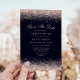 Mit dieser eleganten Save the Date-Karte mit luxuriösem marinischem Hintergrund und einer Kaskade glänzender Goldkonfetti aus der Rose verkünden Sie Ihre Hochzeit. Das moderne und minimalistische Design ist ideal für Paare, die eine Touch von Funkeln und Eleganz schätzen. Personalisieren Sie es mit Ihren Namen und Hochzeitsdatum, um einen einzigartigen Sake zu schaffen, den Ihre Gäste schätzen werden.
