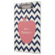 Ein Klemmbrett für die Lehrer, die ein Zickzack Muster der Marine kennzeichnen. Front kennzeichnet eine korallenrote Apfelillustration. Personifizieren Sie mit Ihrem Namen auf Apfel.