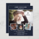 Erstellen Sie Ihre eigene, einzigartige Collage aus Foto. Verwenden Sie vier, vier Ihrer Lieblings-Fotos. Personalisieren und fügen Sie einen Namen und Party-Details hinzu. Dunkelblauer Hintergrund, weißer Text.