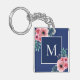 Marineblau | Monogramm-Schlüsselring für florales Schlüsselanhänger