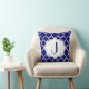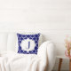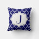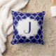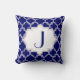 Navy blaues, weißes Quarrefolienmuster gürtelt/werfen Akzent dekorative Kissen oder Kissen mit modernem marokkanischen Gitter Gittergewebe Muster mit Monogramm in einem grauen Rahmen.