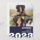 2023 geschlossen? Gehen Sie groß oder gehen Sie Zuhause mit unseren mutigen und übergroßen Typografie-Einladungen! Mit einem übergroßen Grad Schriftart (alle Farben sind editierbar) mit einem Foto in der D, und fügen Sie weitere 3 Foto auf der Rückseite mit einem fett übergroßen 2023. In marineblau blauem Farbverlauf ombre.