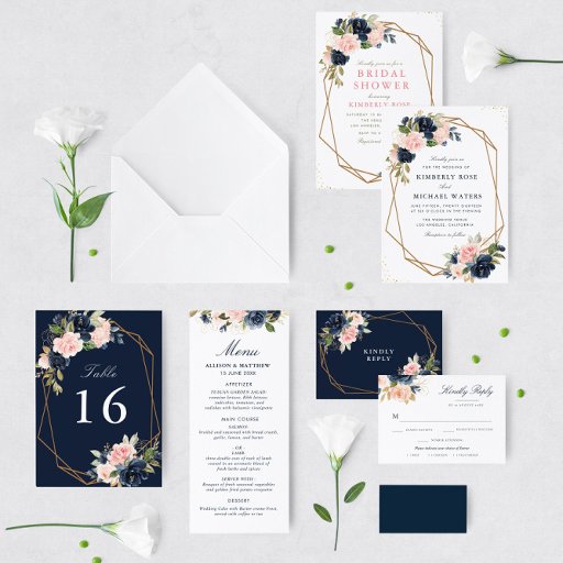 Navy and blush geometric wedding suiteDesignt von Tafa Ryan