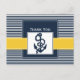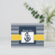 Marineblau-weiße Streifen mit gelbem Rand und weiß gepunkteter Rahmen mit einem Anker, Mod nautische Hochzeit Vielen Dank. Auch passende Produkte sind erhältlich.