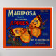 Vintages Fruchtkäfiglabel für Mariposa Brand Extravagante Äpfel aus dem Nordwesten von Kalifornien.