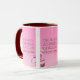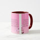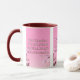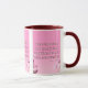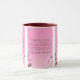 Diese zweifarbige Tasse zeigt ein Design, das einen Schriftart aus Hammersmith One mit weißen Buchstaben, dunkelrosa Kontur mit dem KJV-Bibelschriftenvers "Mark 10:9" zeigt. Auf einem Bild mit einem rosa Rücken mit rosa und weißen Blume, die in diesem religiösen Thema oben platziert sind. Dieser Vers bezieht sich auf das Buch des 10. Mark Kapitel, das den 9. Vers in diesem Bibel Zitat Thema aus der King James Bibel zeigt. Die Felgen & Griffe sind in passenden Farbtönen in Mikrowellen- und Geschirrspüler-Keramik in 11 Unze- oder 15 Unzen-Größen erhältlich.