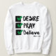 Dieses weibliche Design basiert auf der Mark 11:24 Bibelschrift, die das Wort "Verlangen, Beten, Glauben" anzeigt. Ein Schriftart, der mit schwarzen Buchstaben, grünen und schwarzen Checklisten und Bibelzitaten in diesem auf KJV-Glauben basierenden Zitat-Thema gedruckt wird. Dieses Sweatshirt ist aus 100% Baumwolle hergestellt. Dieses Shirt ist sowohl plush als auch haltbar, was eine großartige Kombination mit einem kleineren passenden Bild auf der Rückseite ergibt.