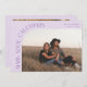 Modern and stylish save the date card featuring a text that says "mark your calendars" along the curved frame photo. One photo in the front and one on the back. The background is lilac.