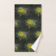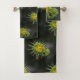 Dieses Handtuch-Set verfügt über einen Sonnenblumenknospen gewartet zu öffnen...Set vor einem dunklen Hintergrund.