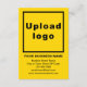 Individuell anpassbare Flachkarte, die Sie für viele Zwecke verwenden können. Sie können es als Marketing-Material verwenden, um Ihr Unternehmen zu werben. Sie können es als Verpackungszubehör Ihres Produkts verwenden. Sie können in Ihre Werbemittel, Werbegeschenke oder Geschenke an Ihre Kunden, um Ihren Markennamen zu fördern. Passen Sie es an und nutzen Sie es, um Markenbewusstsein zu schaffen. Design ist schwarze Texte auf gelbem Hintergrund. Um diese Karte anzupassen, laden Sie Ihr Firmenlogo hoch, geben Sie Ihren Geschäfts- oder Firmennamen, Ihre Adresse, Telefonnummer, E-Mail und Website oder Social Media-Seite ein. Bitte Karo des Erscheinungsbildes nach dem Hochladen von Logos und Schriftzeichen. Wenn Ihnen das Aussehen gefällt, können Sie jetzt Ihre Bestellung aufgeben. Wenn Sie das Logo und die Texte ändern und verschieben müssen, um auf diese Flachkarte oder auf andere Größen, die Sie wählen, passen Sie bitte das Design-Tool an. Sie können auch andere Änderungen vornehmen, je nach Ihren Wünschen, indem Sie die Kartenfarbe, die Farbe des Schriftartes und den Stil des Schriftartes ändern.