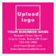 Square Hochglanzposter, das Sie anpassen können, um Ihren Firmennamen und andere Informationen Ihres Unternehmens. Passen Sie es an und verwenden Sie es als Marketing-Material, um Ihr Unternehmen zu werben oder Ihren Markennamen für Kunden oder Kunden zu fördern. Zeigen Sie es an der Wand Ihres Geschäfts, Ihres Geschäfts, Ihres Büros, des Eingangs, des Empfangs, der Lobby oder an einem für Kunden oder Kunden gut sichtbaren Ort. Individuell anpassbare Signatur, mit der Sie Markenbewusstsein schaffen können. Designfarben sind weiße Texte auf rosa Hintergrund. Um dieses Poster zu personalisieren, laden Sie Ihr Firmenlogo hoch, geben Sie Ihren Firmennamen, Ihre Adresse, Telefonnummer, E-Mail und Website oder Ihre Social Media-Seite ein. Bitte Karo des Erscheinungsbildes nach dem Hochladen von Logos und Schriftzeichen. Wenn Ihnen das Aussehen gefällt, können Sie jetzt Ihre Bestellung aufgeben. Wenn Sie das Logo und die Texte ändern und verschieben müssen, um auf dieses Poster oder auf die Größe und Form, die Sie wählen, passen Sie bitte das Design-Tool an. Sie können auch andere Änderungen im Design-Tool nach dem Aussehen dieses Posters, die Sie bevorzugen, wie zum Beispiel die Änderung der Hintergrundfarbe, Schriftart Farbe und Schriftart Stil.