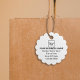 Markenbezeichnung auf weißem, skallopiertem Round- Geschenkanhänger