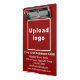 Es ist auch angenehm, eine maßgeschneiderte Büroausstattung zu haben, um Markenbewusstsein zu schaffen. Mini-Zwischenablage, die Sie anpassen können, um Ihren Firmennamen und Logo. Mini-Zwischenablage ist rot und Schriftart weiß. Passen Sie es an, indem Sie Ihr Firmenlogo hochladen, Ihren Firmennamen, Ihre Adresse, Telefonnummer, E-Mail und Website oder Social Media-Seite eingeben. Karo des Erscheinungsbildes nach dem Hochladen von Logos und Texttipps. Wenn es Ihnen gefällt, können Sie jetzt Ihre Bestellung aufgeben. Wenn Sie Änderungen vornehmen müssen, wie z.B. die Größe und das Verschieben des Logos, um in diese Miniklipboard-Vorlage zu passen, und nach Ihren Wünschen, klicken Sie auf Weitere anpassen. Klicken Sie auf Fertig, nachdem Sie Änderungen vorgenommen haben.