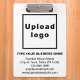 Sie suchen eine Büroausstattung, mit der Sie Markenbewusstsein schaffen können? Bevorzugen Sie auch eine schlichte schwarz-weiße Zwischenablage? Bitte lesen Sie diese Zwischenablage, die Sie anpassen können, um Ihren Firmennamen und Ihr Logo zu platzieren. Es könnte dir gefallen. Um diese Zwischenablage anzupassen, laden Sie Ihr Firmenlogo hoch, geben Sie Ihren Firmennamen, Ihre Adresse, Telefonnummer, E-Mail und Website oder Social Media-Seite, dann Karo das Erscheinungsbild. Wenn Ihnen das Aussehen gefällt, können Sie jetzt Ihre Bestellung aufgeben. Wenn Sie Änderungen vornehmen möchten, wie z.B. die Größe und Verschiebung des Logos und der Texte, um sie in diese Zwischenablage einzufügen, und nach Ihren Wünschen, klicken Sie auf Weitere Anpassungen. Sie können auch die Farbe der Schriftart und den Hintergrund ändern. Klicken Sie auf Fertig, nachdem Sie Änderungen vorgenommen haben.
