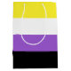 Nichtbinäre können sich als Personen mit zwei oder mehr Geschlechtern identifizieren; ohne Geschlecht, Geschlechtsverkehr oder Geschlechtsidentität, oder als drittes Geschlecht oder als andere Geschlechter eine Kategorie, die diejenigen einschließt, die ihrem Geschlecht keinen Namen geben. Jede Stripe-Farbe repräsentiert verschiedene Arten nichtbinärer Identitäten: Gelb für Menschen, die sich außerhalb des Geschlechterbinärs identifizieren, weiß für nichtbinäre Menschen mit mehreren Geschlechtern, lila für Menschen mit einer Mischung aus männlichen und weiblichen Geschlechtern, und schwarz für ältere Individuen.