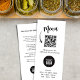 Dieses Design verfügt über ein Marketing, eine Broschürenkarte mit Service und Menüs mit einem trendigen, minimalistischen Stil, eine scannable QR-Code-Vorlage, ideal für Restaurants und Catering