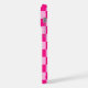 Checked Quadrate heißen rosa Retro Monogram iPhone Case. Personalisieren Sie Ihre individuelle Eingabe und Ihren eigenen Namen. Cooles, hintergrundgezogenes geometrisches Quadratmuster. Vintage Fliesen hellrosa und warmes rosa modernes Schachbrett.