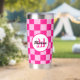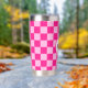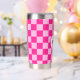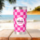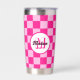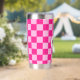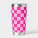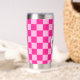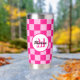 Prüfbar Hot rosa geometrische Retro Monogram Insulated Tumbler. Gekreuztes geometrisches Retromuster Wasserflasche. Praktisches Geschenk für aktive Dame. Cooles geometrisches rechteckiges Muster in Retro. Vintage Kacheln heiß rosa modernes Schachbrett.