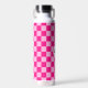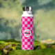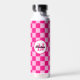 Kontrollierte heiß rosa geometrische Retro Monogramm Insulated Water Flasche. Gekreuztes geometrisches Retromuster Wasserflasche. Praktisches Geschenk für aktive Dame. Cooles geometrisches rechteckiges Muster in Retro. Vintage Fliesen leicht rosa heiß rosa modernes Schachbrett. Personalisieren Sie Monogram mit Ihrem benutzerdefinierten Initial und Namen.