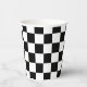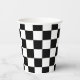 Checked Quadrate Schwarz-Weiß geometrische Retromuster Paper Cup. Party liefert Geschirr zum Geburtstag. Markierte Quadrate schwarz-weiß geometrisches Retromuster für jeden. Cooles, hintergrundgezogenes geometrisches Quadratmuster. Vintage Fliesen schwarz-weiß modernes Schachbrett.